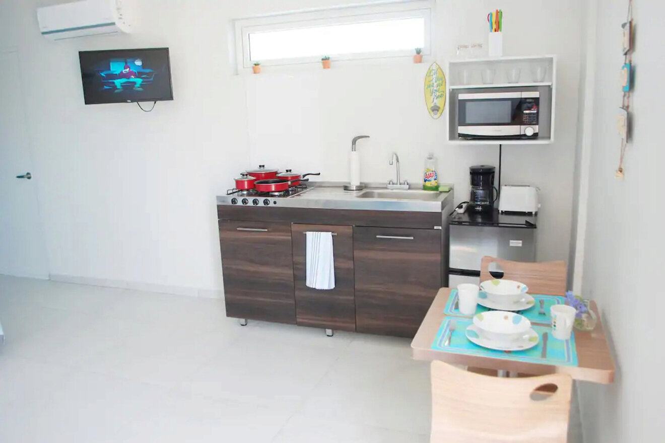 El alojamiento cuenta con una pequeña cocina y todas las comodidades que necesitas para tu viaje. También hay restaurantes junto al mar a poca distancia de este Airbnb donde podrás disfrutar de una exquisita comida de mariscos.