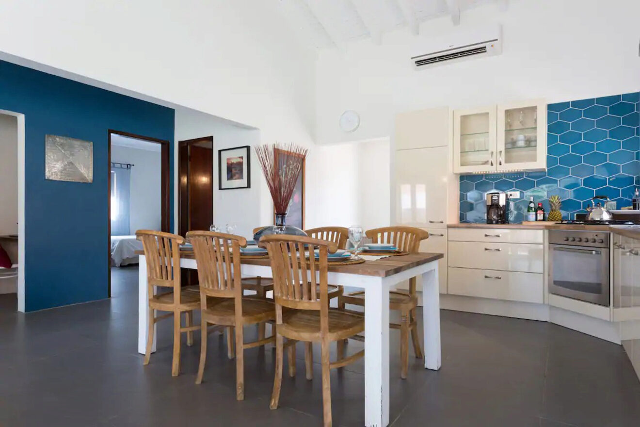 A cinco minutos en coche de Palm Beach y a diez minutos de Boca Catalina (Malmok Beach), esta villa privada combina comodidad y conveniencia. Cuando no esté explorando las atracciones cercanas, podrá disfrutar de una comida casera en esta cocina completamente equipada. La mesa del comedor tiene espacio para seis personas, ideal para compartir una buena conversación y una comida deliciosa.