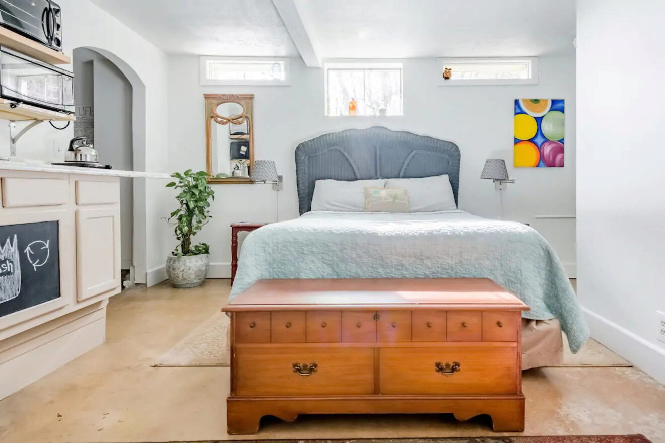 Si planeas un fin de semana romántico (o incluso más) en Asheville, este estudio es justo lo que necesitas. Con todo lo que puedas desear o necesitar, aquí te relajarás y conectarás, ya sea leyendo un libro en la cama o sentado junto a la chimenea en el patio.
