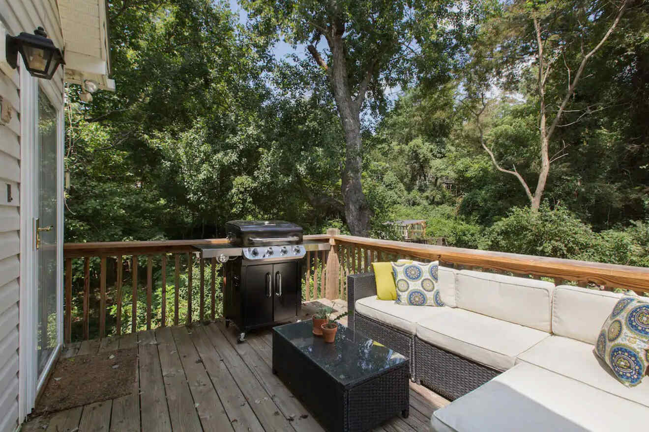 Si buscas unas vacaciones activas, esta es la tuya. Esta cabaña de Airbnb en Asheville se encuentra junto a varias rutas de senderismo y junto a un arroyo caudaloso (¡donde hay una mesa de pícnic!). Además, está a solo minutos del centro de Asheville.