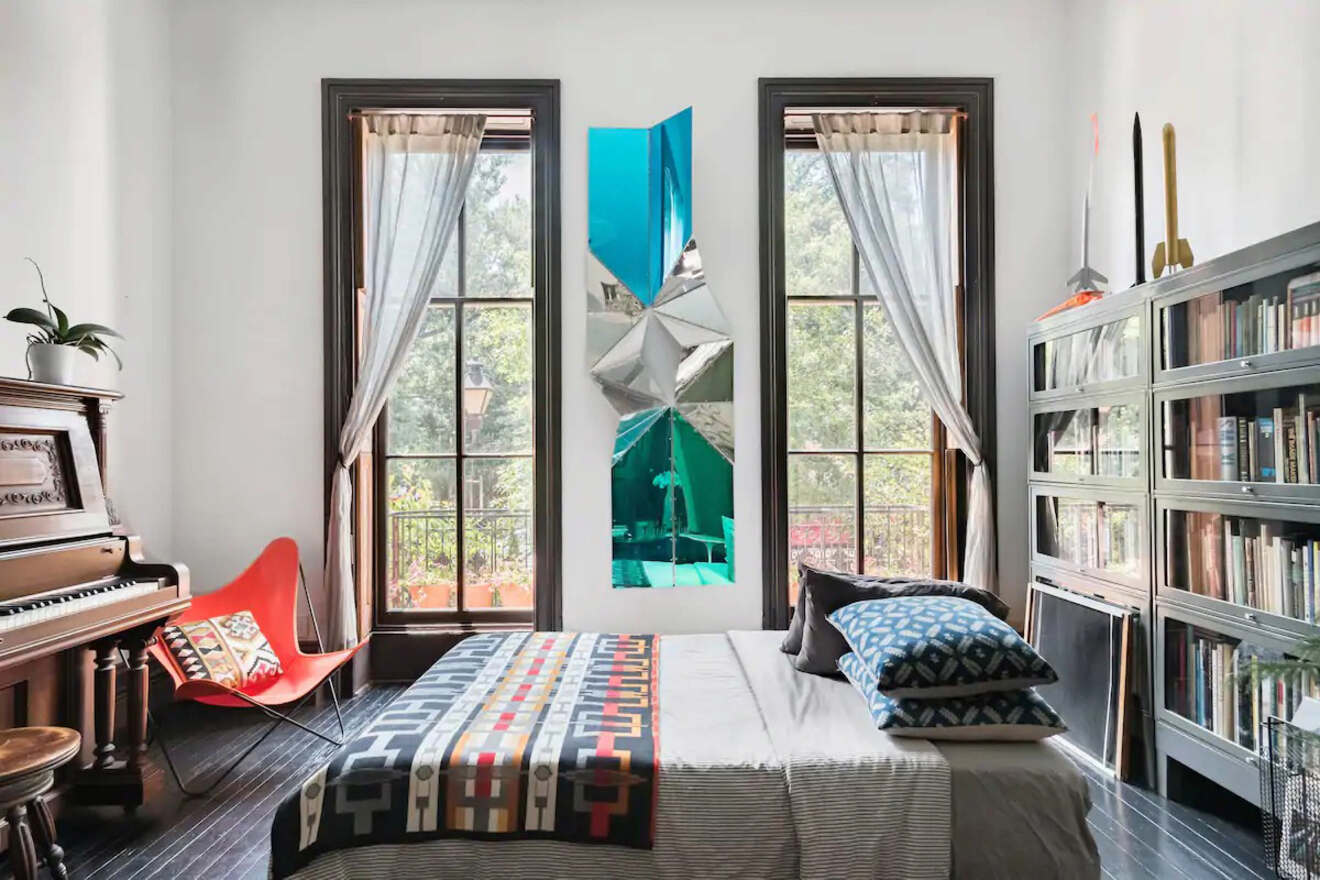 El interior de Airbnb ofrece un ambiente acogedor y hogareño, único en Baltimore. Disfruta de un libro en tu cama con vistas al exuberante jardín desde la ventana, o prueba suerte tocando el piano. Vive tu fantasía artística en este hermoso estudio de Airbnb.