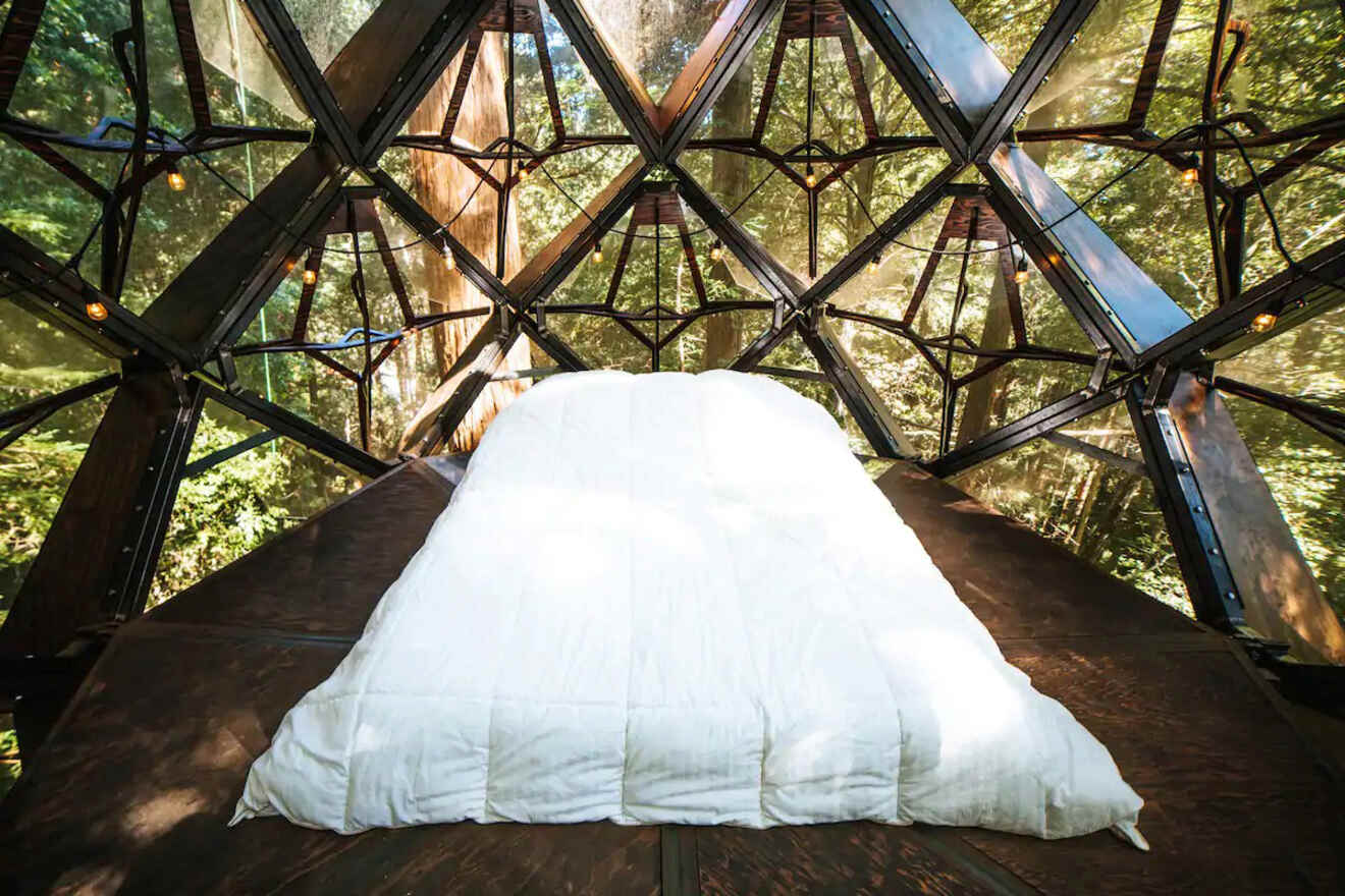¿Buscas una experiencia única en California? Pues bien, ¿por qué no dormir en las altas copas de las secuoyas enclavadas en Bonny Doon, a 16 kilómetros al norte de Santa Cruz? Este interesante alojamiento de Airbnb tiene capacidad para dos personas y está diseñado como una auténtica piña, con paredes de cristal para una experiencia impresionante.