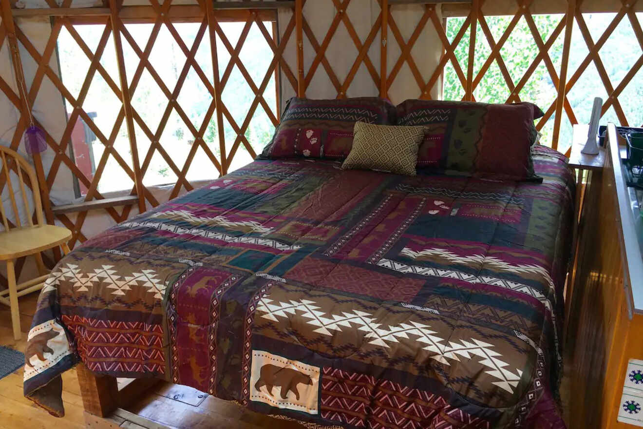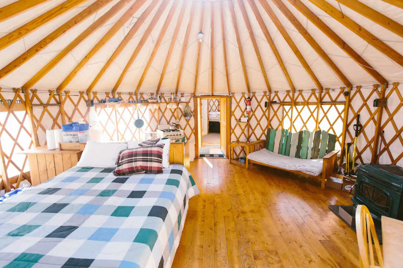 Puede que tengas que renunciar a algunos de los lujos de la ciudad al alojarte aquí (como un baño interior), pero si te gusta el glamping, te encantará este Airbnb. Las noches de invierno pueden ser muy frías, pero la estufa de leña interior te ayudará a mantenerte calentito.