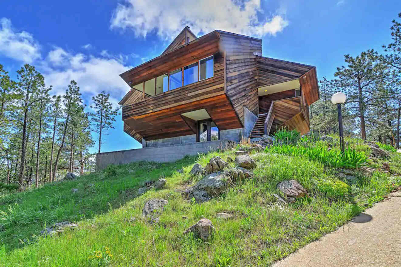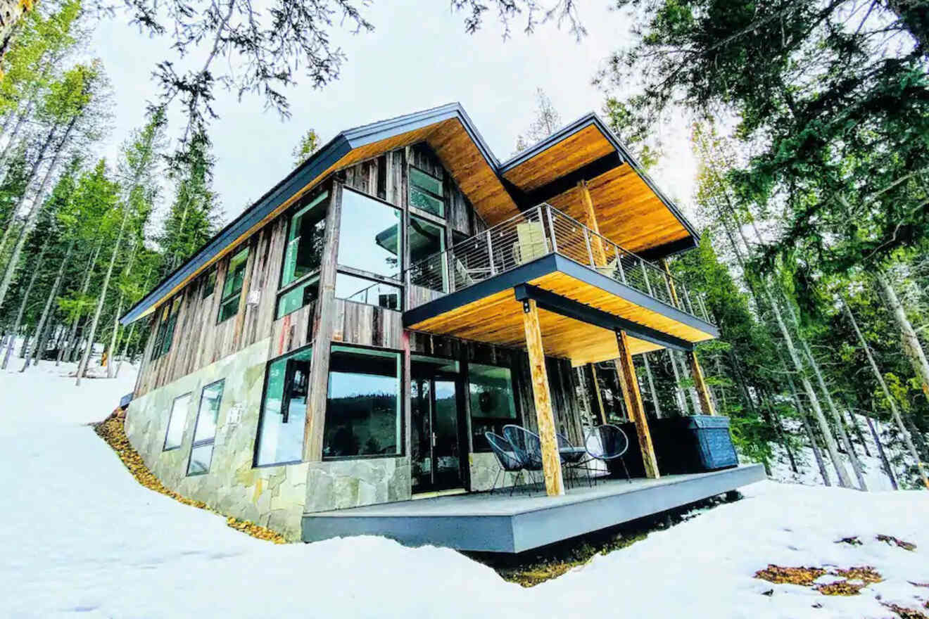 Si te interesa alojarte en las Montañas Rocosas, este Airbnb con una arquitectura de madera única se encuentra a una altitud de 2130 metros. Se encuentra en un pico de montaña de 1,2 hectáreas con increíbles vistas.