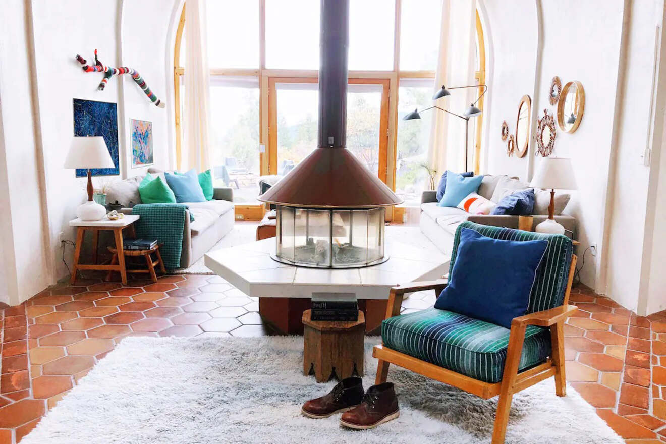 De vuelta en casa, tendrás el lugar perfecto para relajarte. En la sala de estar, encontrarás una chimenea interior y un balcón exterior. Dos de los mejores lugares para terminar el día. ¡No te pierdas su increíble página de Instagram para ver más fotos de este precioso Airbnb!