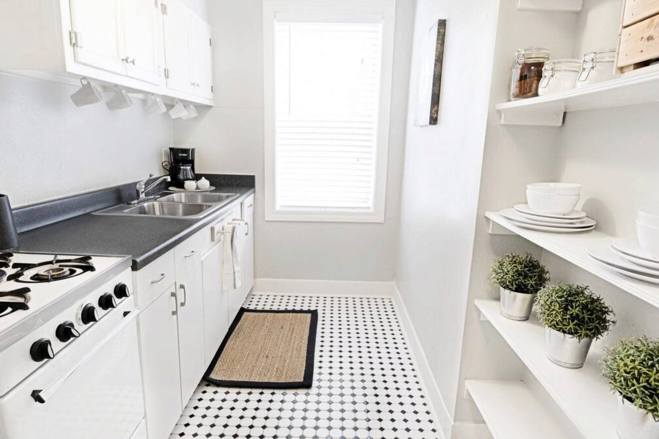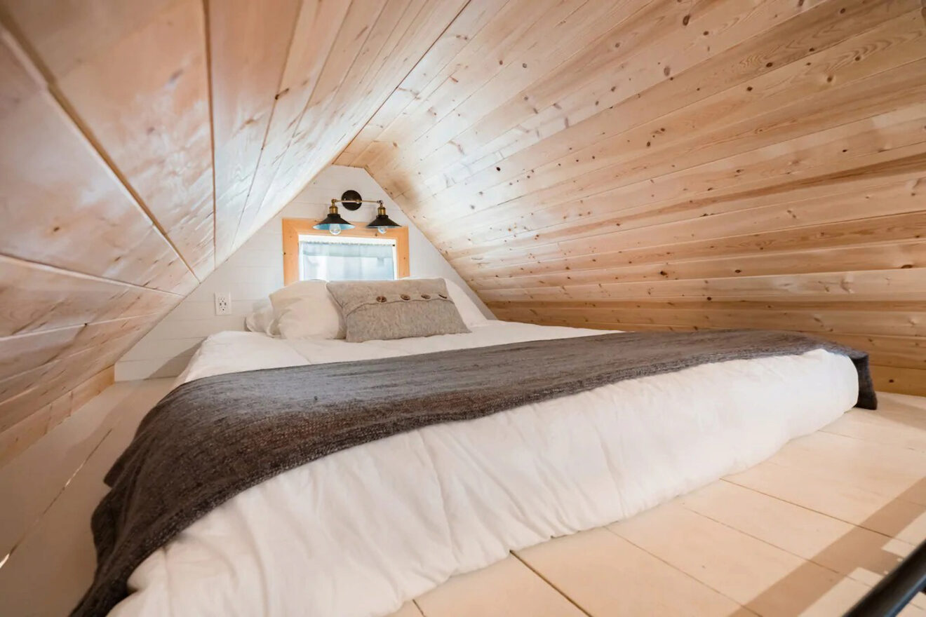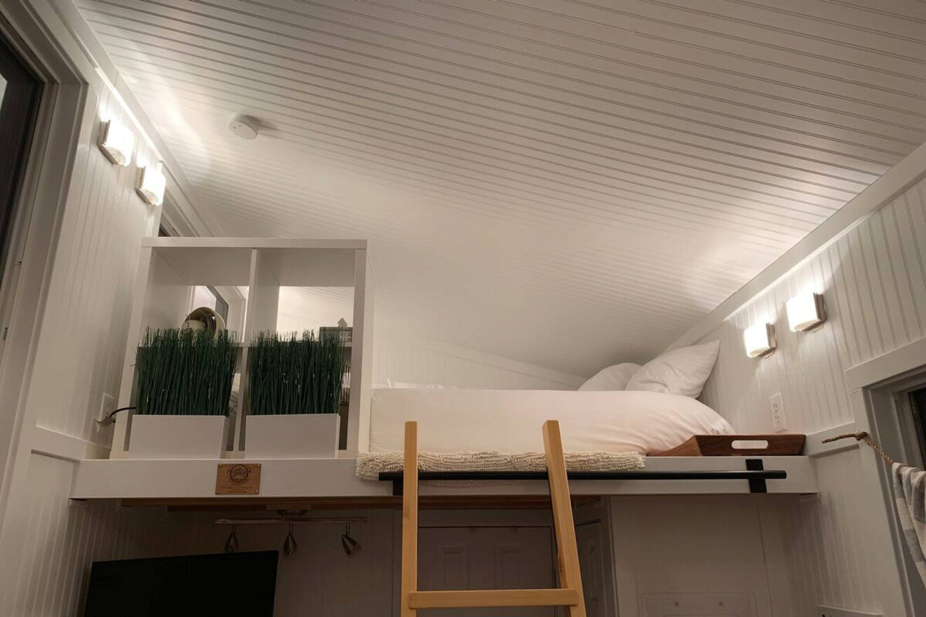 Los anfitriones de este Airbnb en Dallas han aprovechado inteligentemente el pequeño espacio disponible para crear un hogar moderno y único. Súbete a la cama alta para dormir bien o para ver una serie en el televisor de pantalla plana.