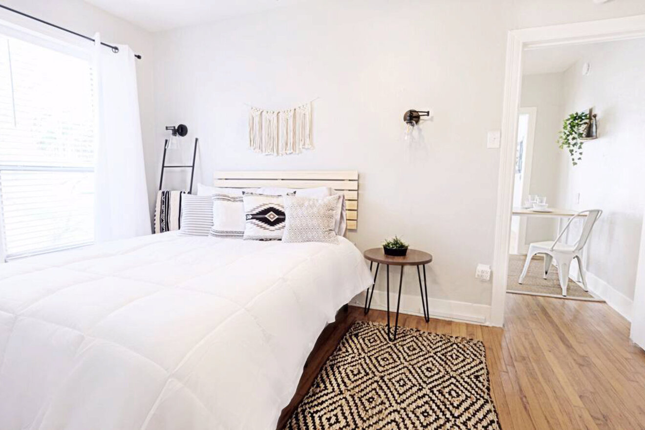 Ubicado en el histórico barrio de Winnetka Heights , este Airbnb es un oasis en el centro de Dallas. Su decoración neutra crea un ambiente tranquilo y relajante al que siempre querrás volver.