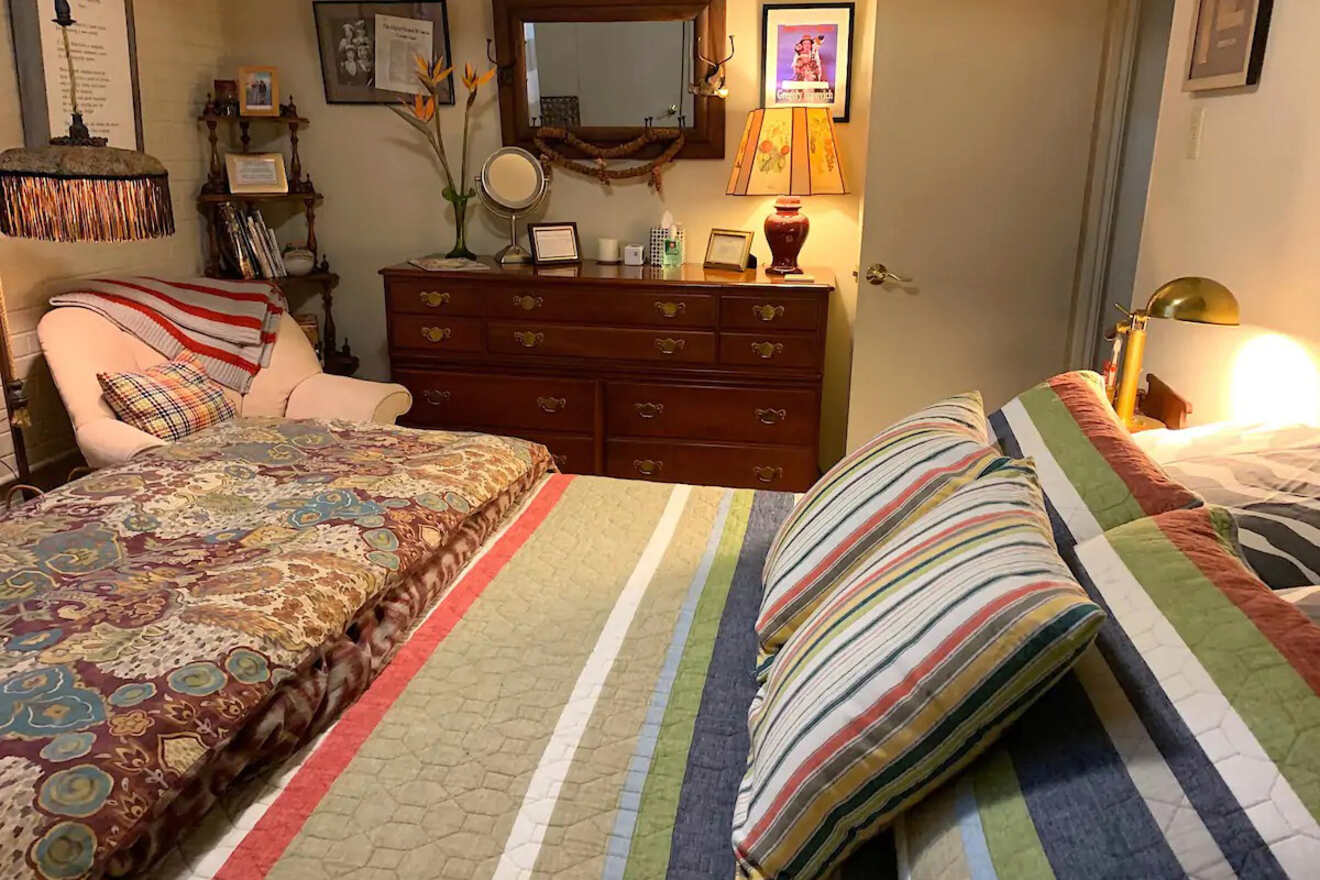 Los acabados coloridos y los muebles vintage te hacen sentir cálido y acogedor al entrar en la casa. La acogedora atmósfera que transmite la casa puede hacer que sea difícil irse. Pero estar a poca distancia del café Cocoa Cinnamon , el mercado local de agricultores y el Motorco Music Hall hace que valga la pena salir a explorarla.
