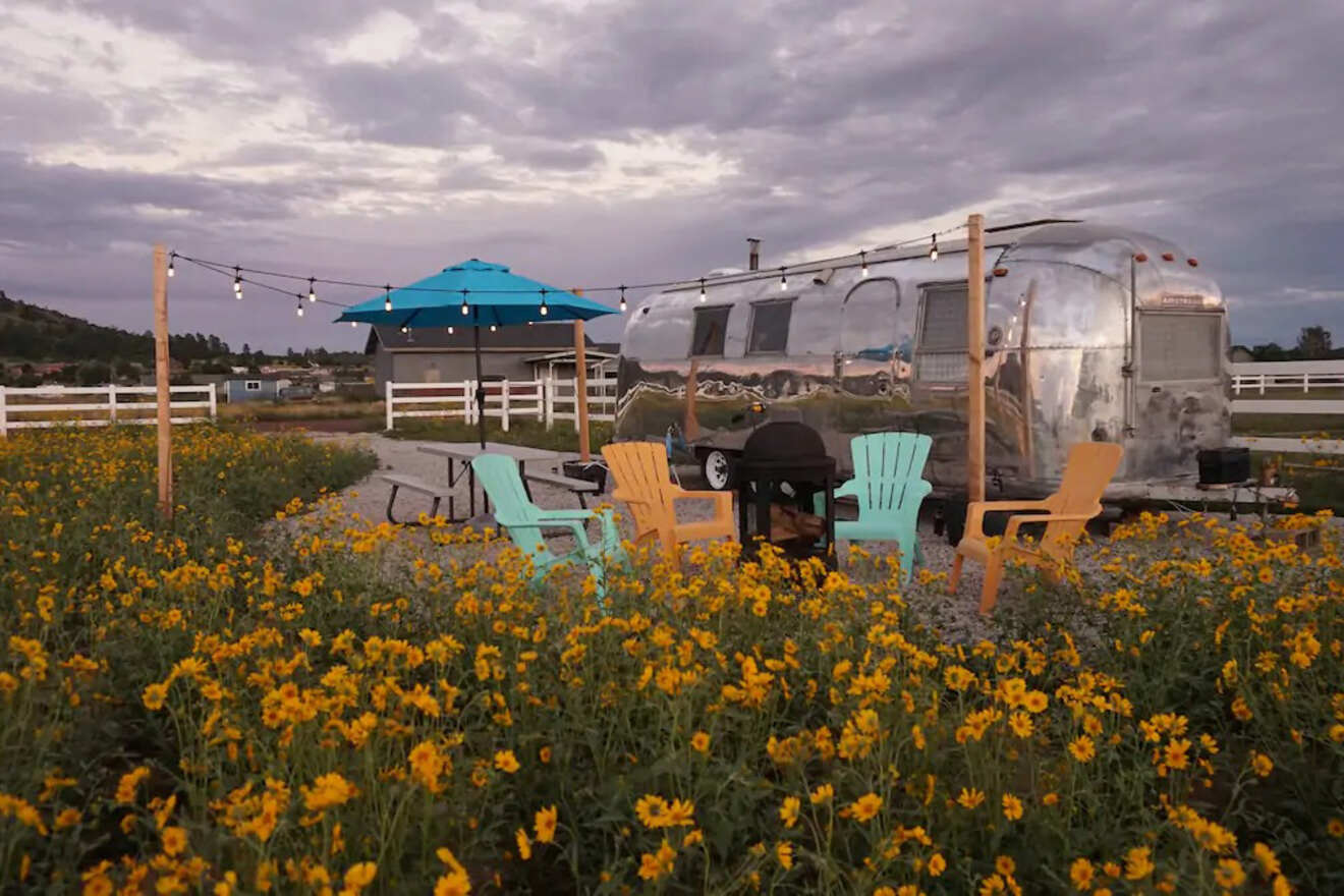 Si eres amante de todo lo retro, te iluminarás al ver esta Airstream restaurada de 1965. Esta autocaravana clásica es tan genial como parece, con una hermosa vista a la montaña y luces de colores colgadas alrededor del área para sentarse al aire libre.