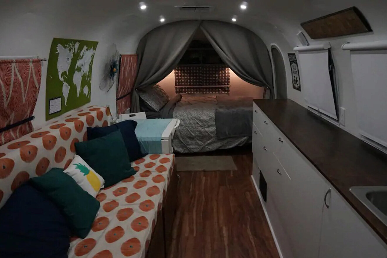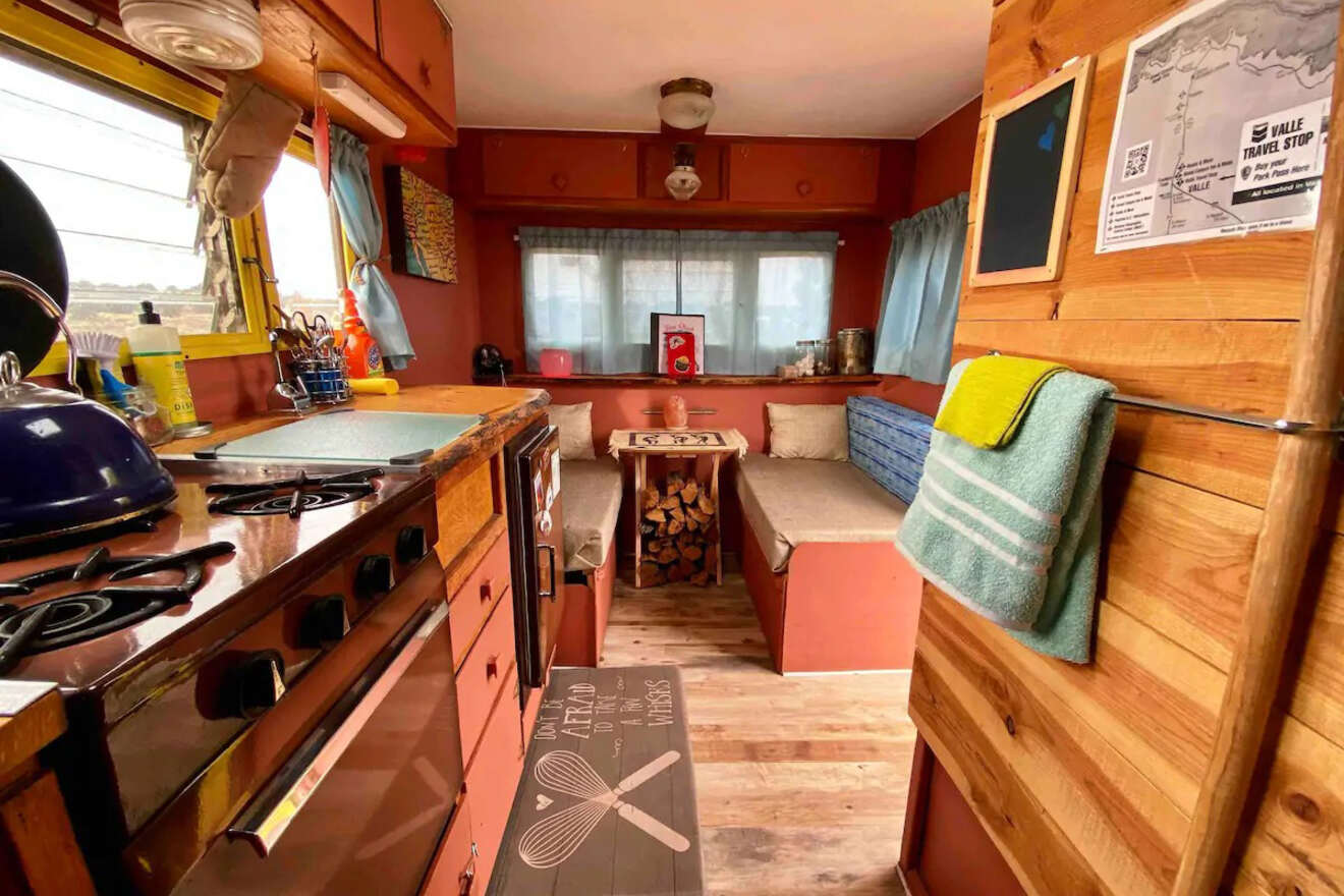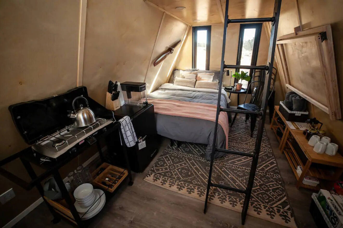 Con poco más que una cocineta y un par de camas, no es un espacio grande. Pero el diseño es impecable y perfecto para una experiencia de glamping de lujo.