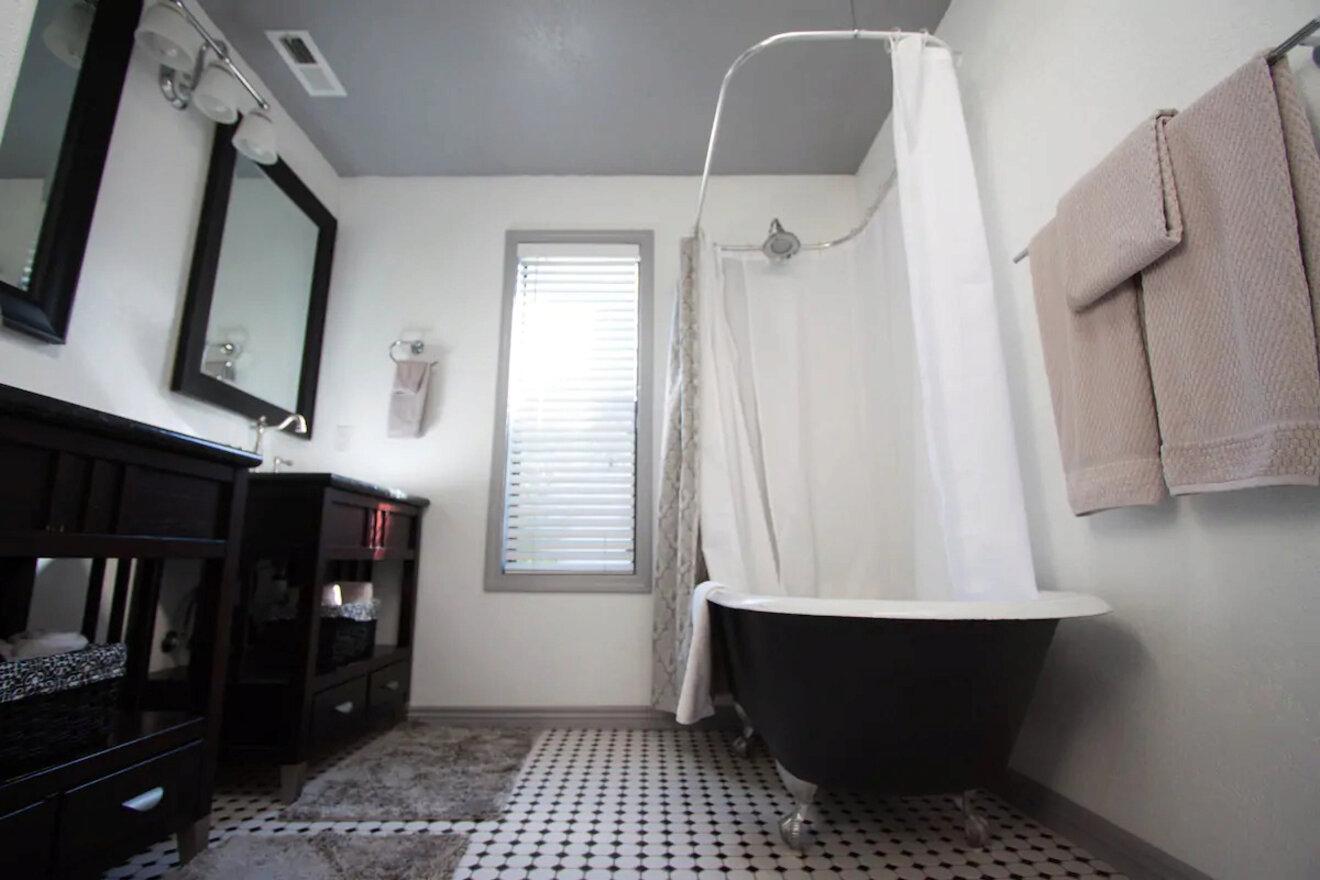 Puedes disfrutar de un café en el patio a la sombra mientras planeas tu día y luego emprender el pintoresco viaje de una hora al Gran Cañón. Más tarde, aprovecha al máximo la elegante cocina completamente equipada y reproduce algo en uno de los dos televisores inteligentes. Después, deja que la lavadora y la secadora se encarguen de las tareas domésticas mientras te relajas en la bañera con patas.