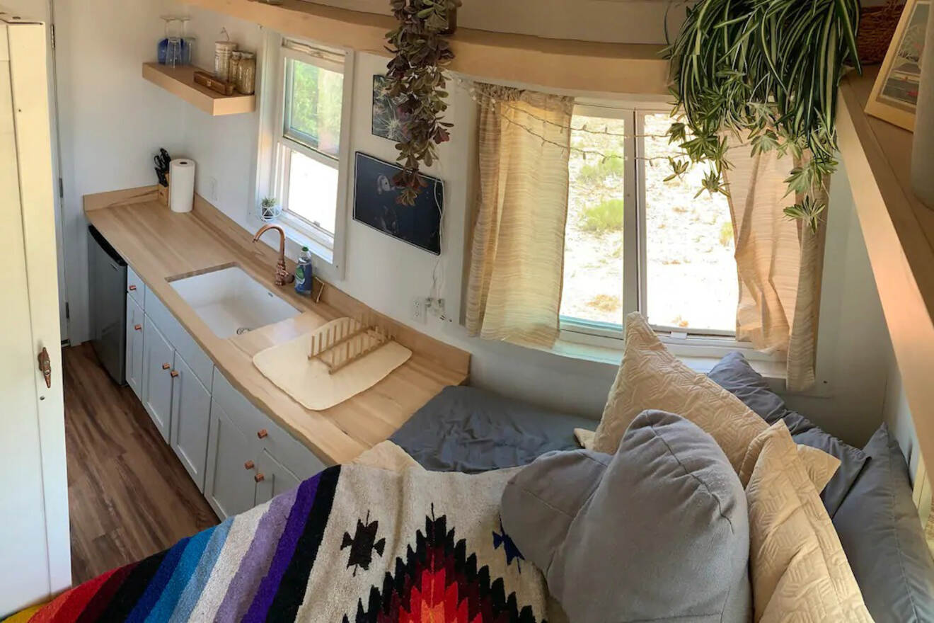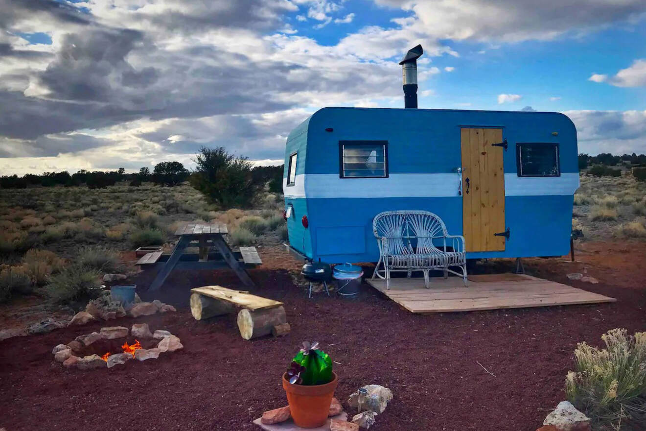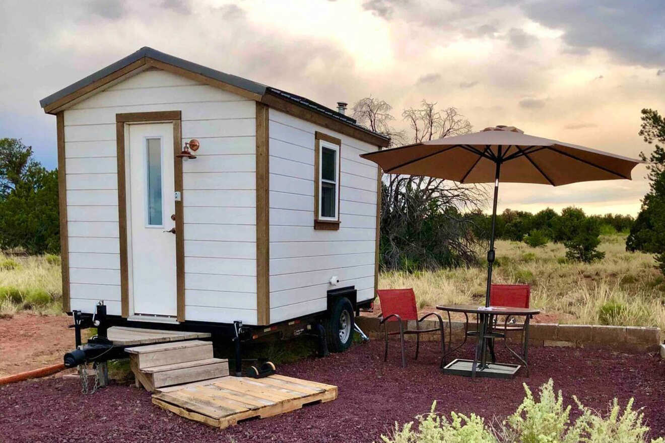 Como alternativa a acampar, acampar o dormir en los amplios paisajes de Arizona, puedes alojarte en minicasas como esta para sentirte más a gusto. Sin embargo, prepárate para la simplicidad, ya que al estar aislada de la red eléctrica, no hay agua corriente, ni un baño elegante, ni wifi.
