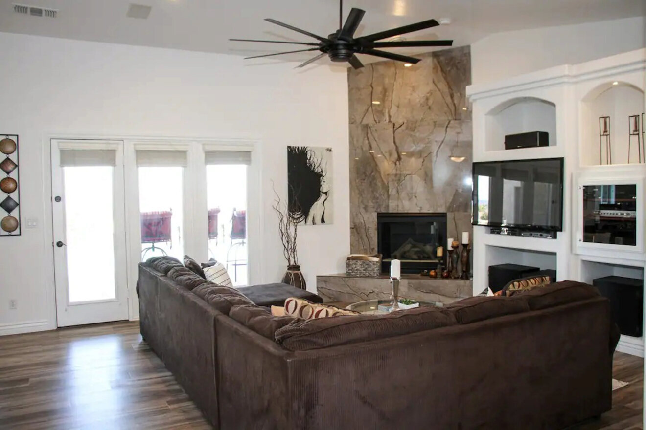 Esta entrada de Airbnb es perfecta para grupos o familias numerosas. Como huésped, vivirá rodeado de lujo en la costa norte del Lago Havasu. Recomiendo la habitación principal, con cama king y sala de estar privada, donde podrá disfrutar de magníficas vistas al lago y las montañas de Arizona.