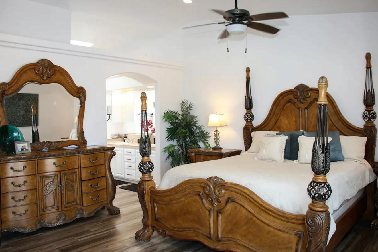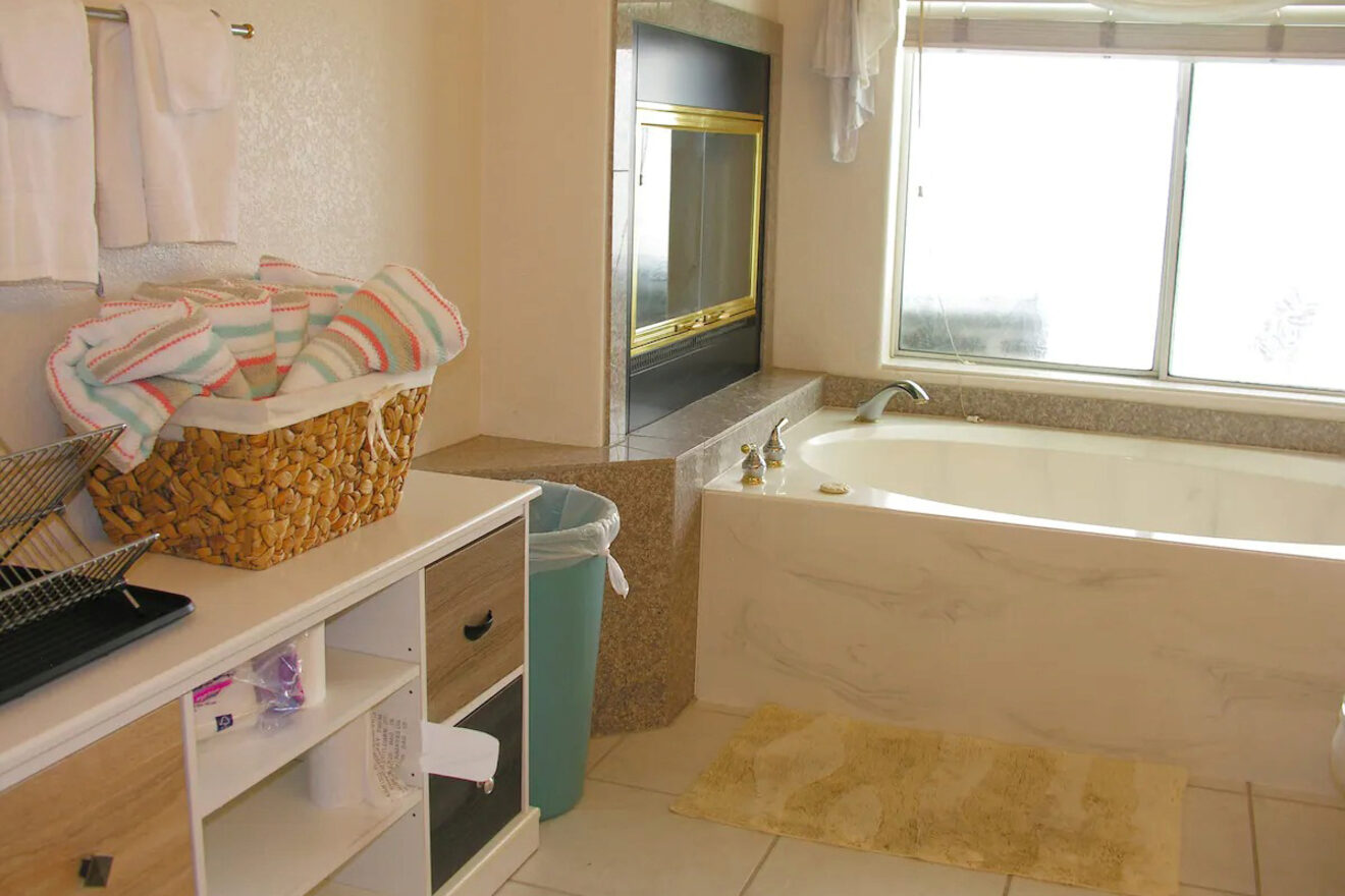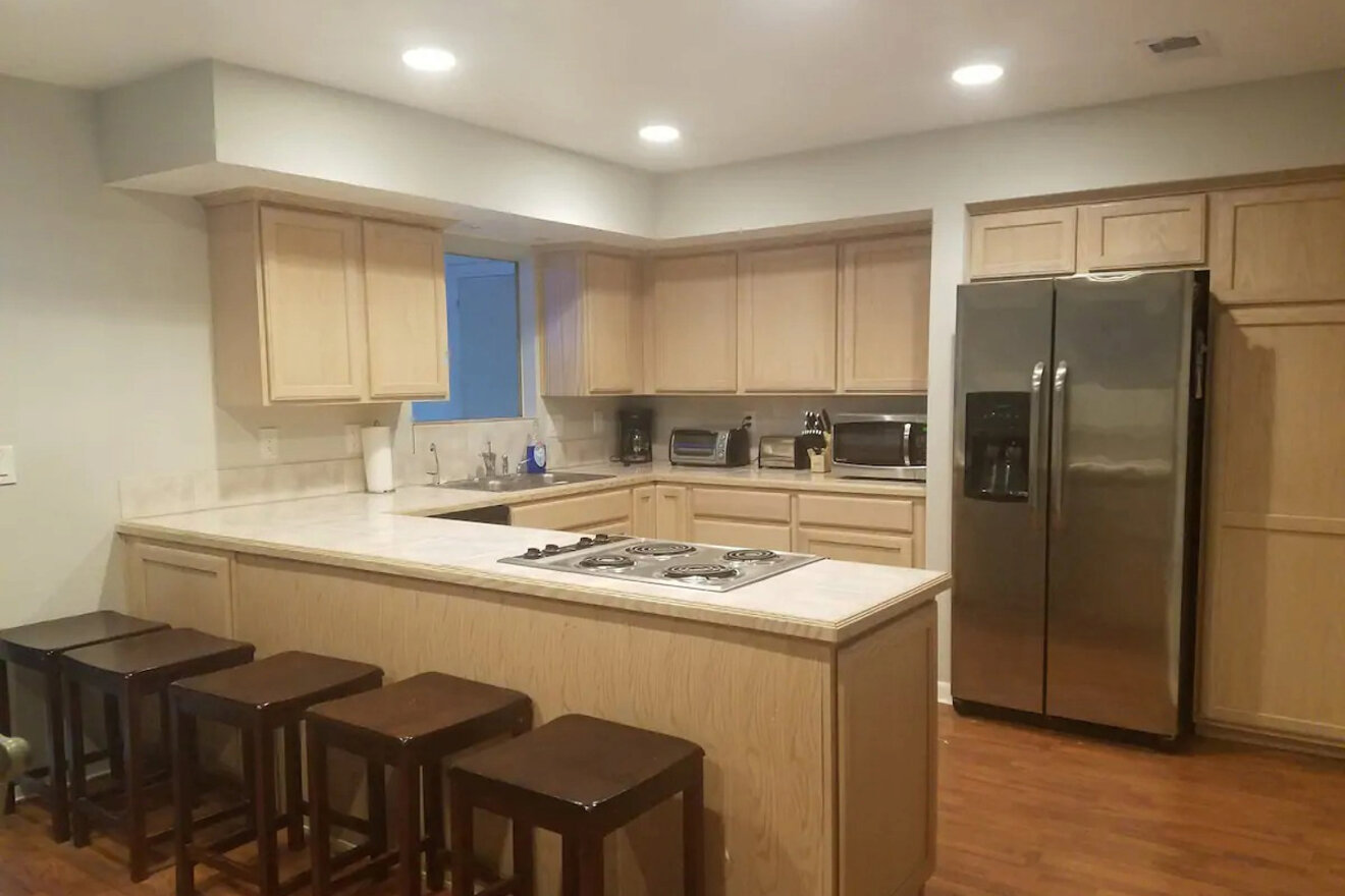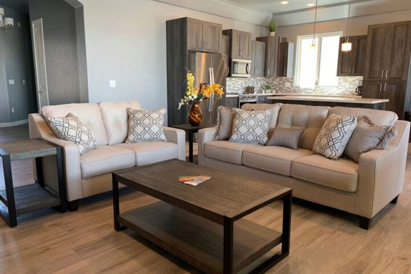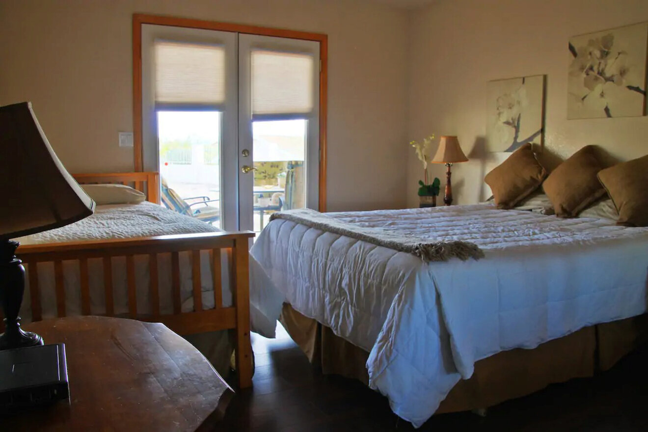La única opción para dos huéspedes en mi lista, Luxury Casita, no solo es económica, sino que también ofrece un interior moderno y lujoso con amplio espacio para disfrutar de sus vacaciones en Lake Havasu City. Si desea preparar algo, la cocina está totalmente equipada con un refrigerador grande, estufa, horno y hermosas encimeras de granito.