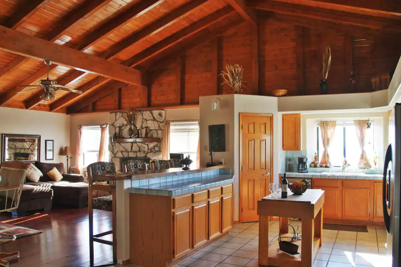 La decoración interior es impresionante, con una combinación de madera y azulejos que crea un ambiente cálido. Disfrutarás preparando comida en la cocina gracias a la sala de estar de planta abierta.