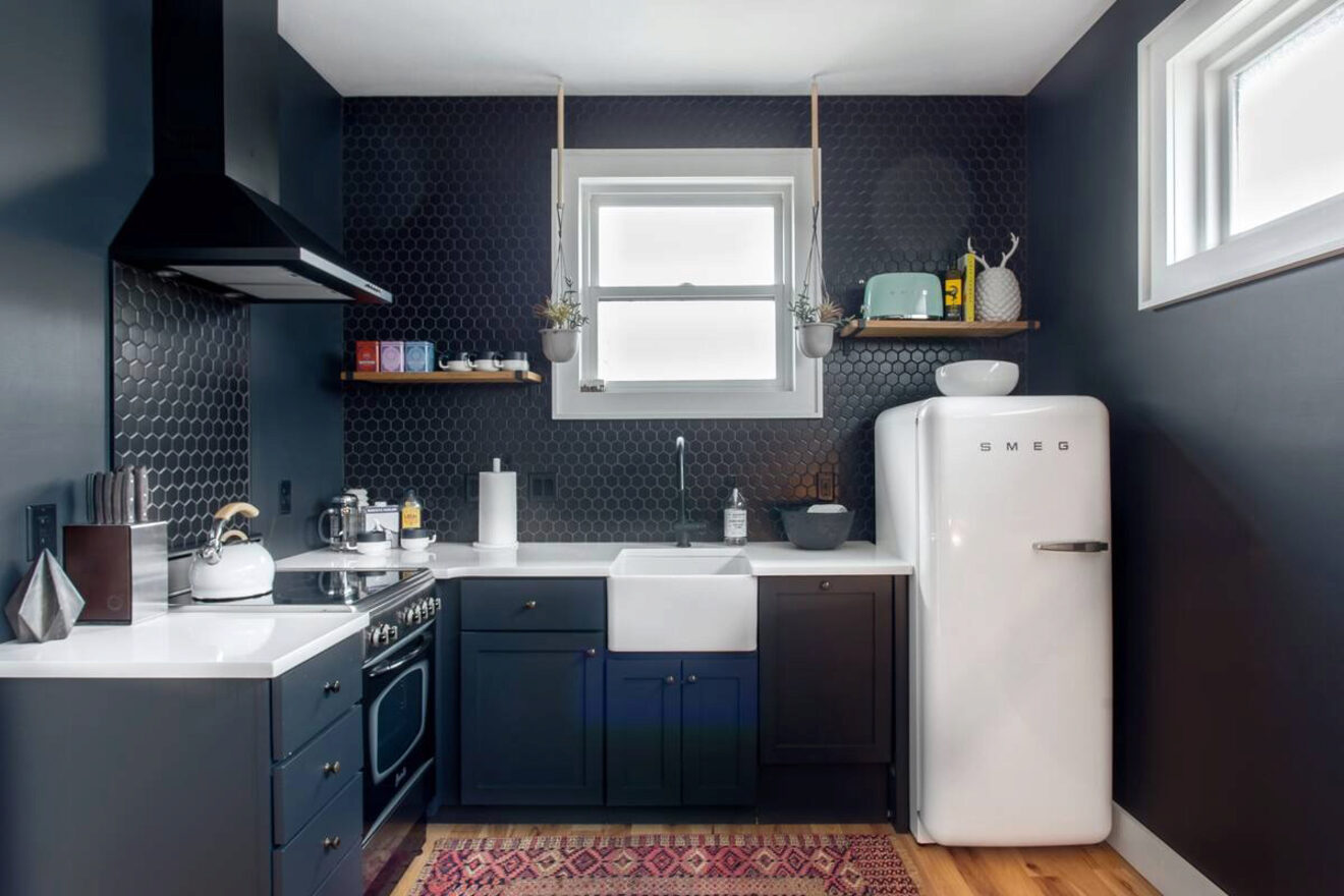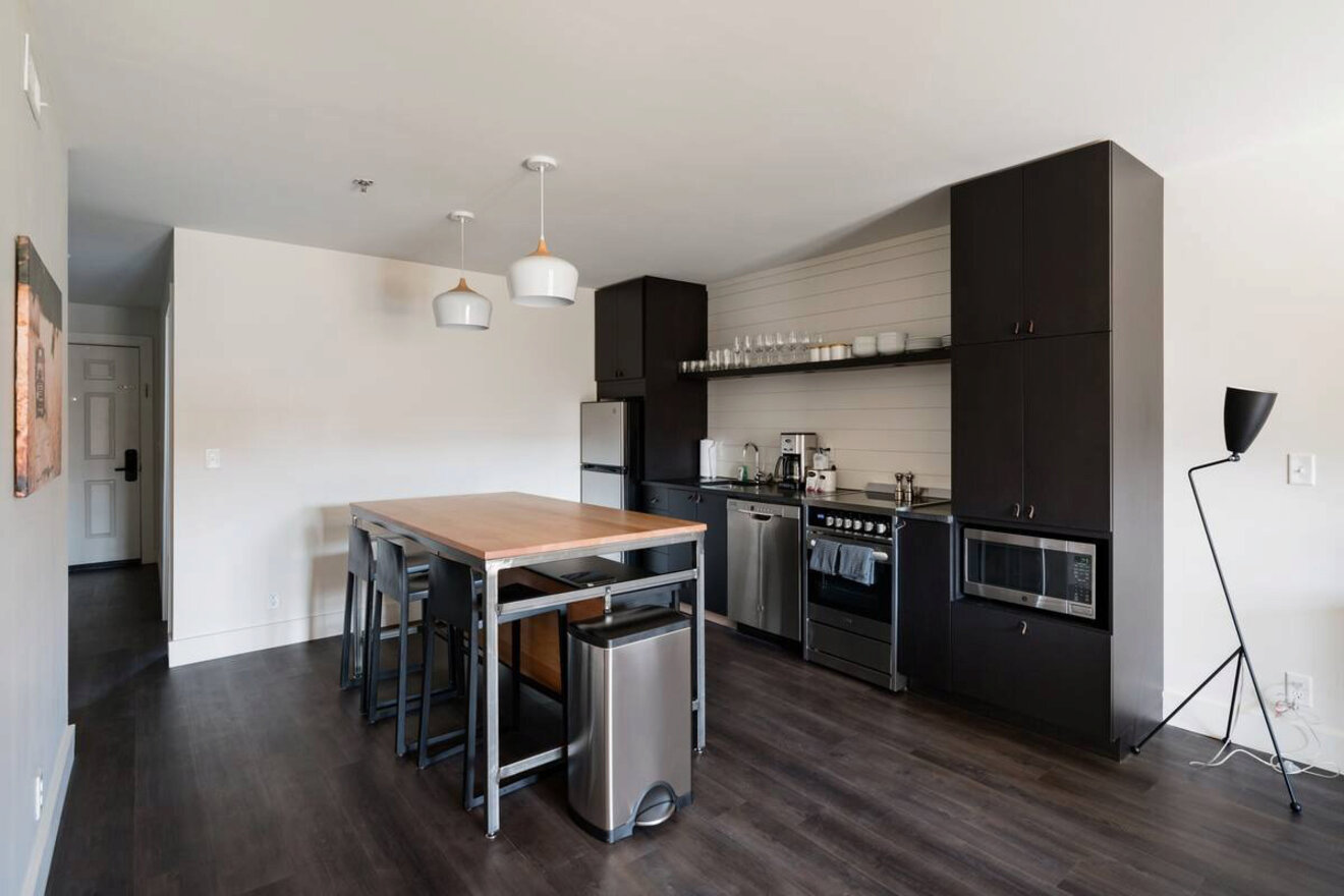 Esta elegante escapada urbana ofrece muchísimo espacio, con una casa principal y una trasera unidas por un sótano. Si su familia es grande, le encantará la privacidad de este espacio. Los padres pueden relajarse en su moderno dormitorio tipo loft mientras los niños tienen su propio espacio en el sótano.