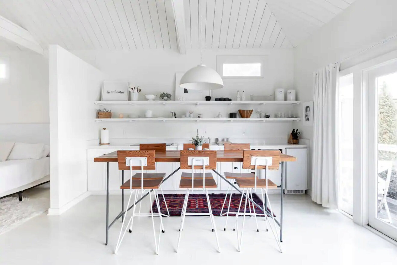 Hay algo muy elegante en la decoración totalmente blanca, y este refugio contemporáneo renovado no es la excepción. Gracias a la elegante simplicidad de la decoración, el espacio es un oasis de confort si buscas un refugio tranquilo con una cama cómoda.