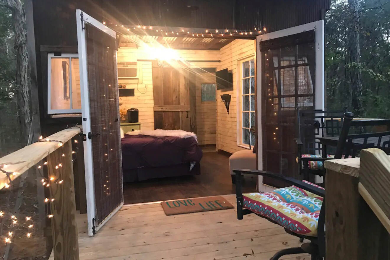 Otra encantadora minicasa con excelentes reseñas, esta cabaña de ensueño en el bosque ofrece un ambiente realmente refrescante. Toda la propiedad es luminosa y fresca, sin mencionar su increíble ubicación: estarás a salvo en el hermoso bosque de Nashville. Este Airbnb también es especialmente apto para niños, con una adorable zona de juegos y un trepador en el exterior de la minicasa.