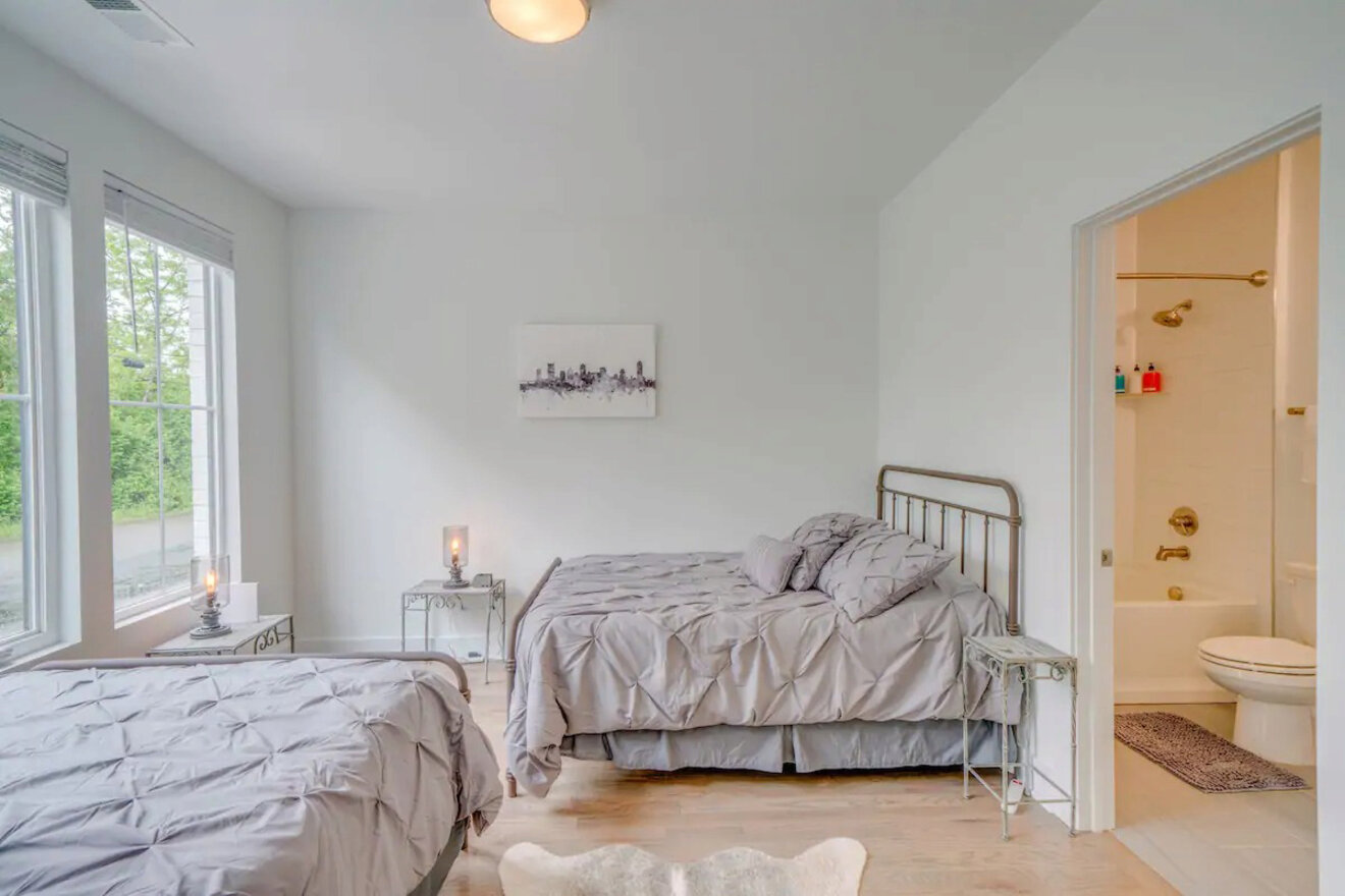 Toda la acción está a pasos de este Airbnb. Pero también puedes quedarte en casa y contemplar el hermoso horizonte de Nashville desde tu apartamento privado con aire acondicionado. Este alojamiento tiene muchísimas reseñas excelentes: encontrarás un espacio impecable, una cama cómoda, aparcamiento gratuito y una decoración preciosa.