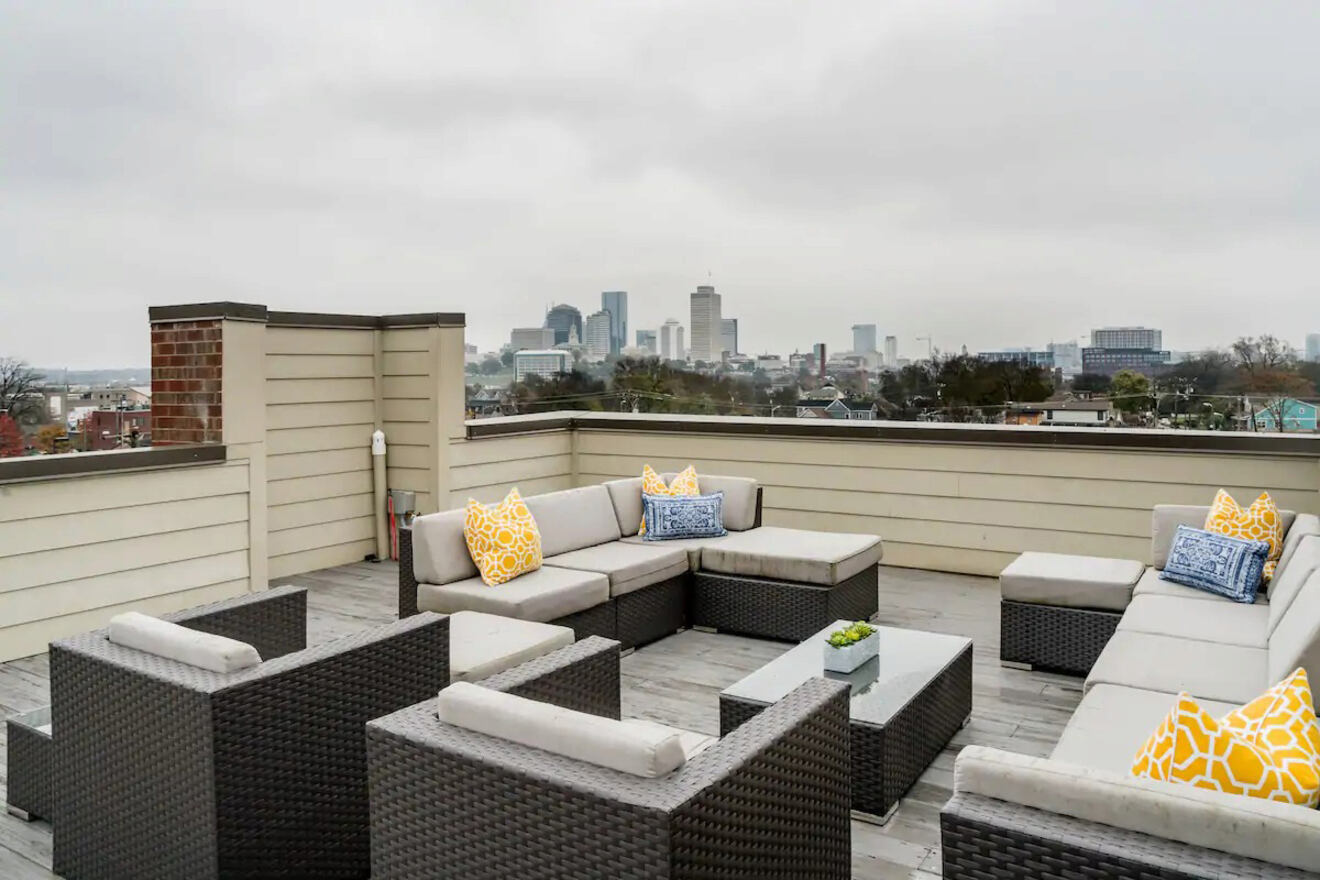Puede que los temas no sean para todos. ¿Qué tal una elegante casa en Music City con terraza en la azotea? Este santuario de tres pisos tiene un diseño contemporáneo y un toque chic que sin duda alegrará tu despedida de soltera. La impecable casa en la 10.ª Avenida ofrece comodidad extrema, una maravillosa habitación principal y una hermosa vista del horizonte de la ciudad desde la encantadora terraza en la azotea.