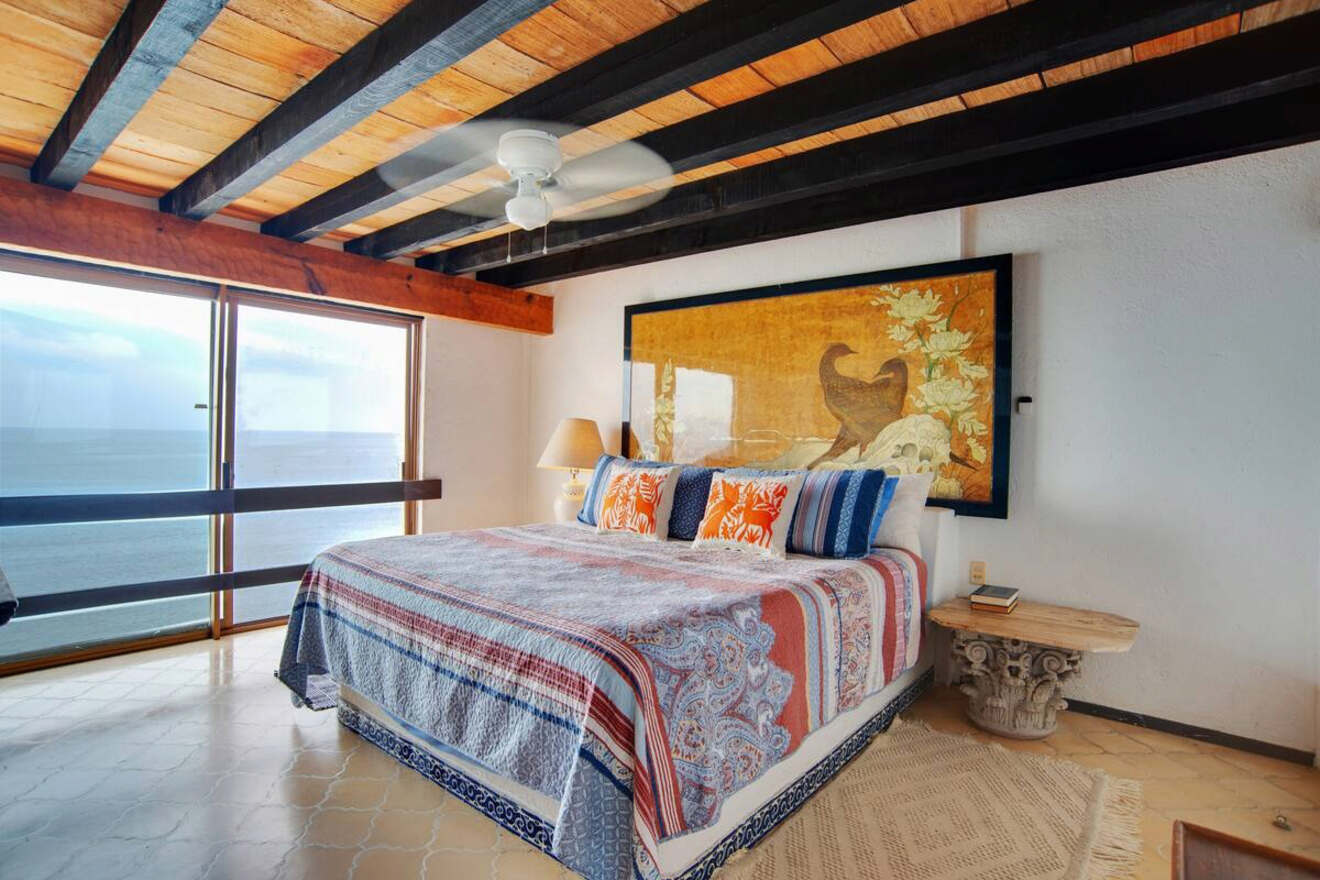 Desde el dormitorio principal, tendrás las mejores vistas al mar. Abre las puertas corredizas de cristal para dormirte con el sonido de las olas.