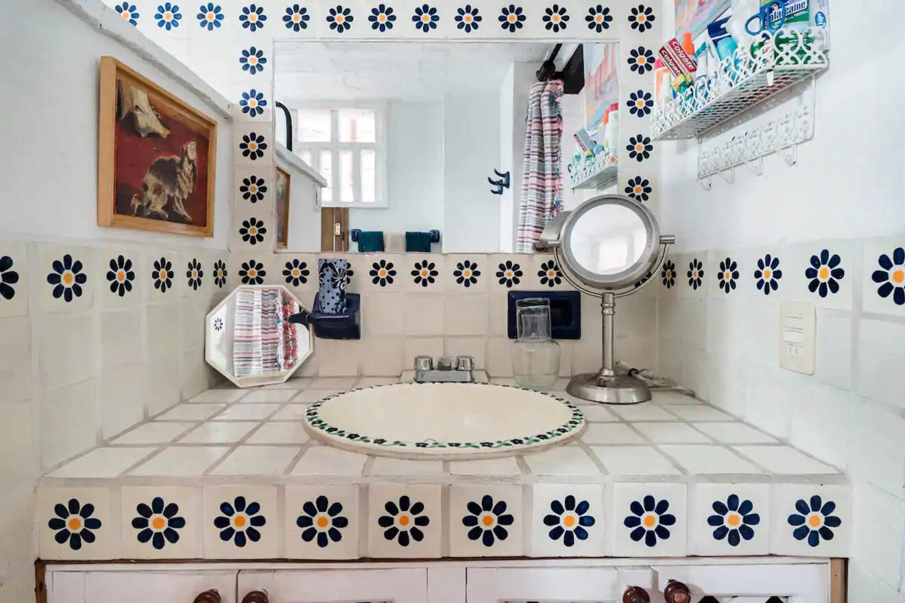 El exterior sencillo y limpio de este Airbnb en Puerto Vallarta es increíblemente engañoso. Al cruzar la puerta, te encontrarás rodeado de una vibrante decoración de temática mexicana. La combinación de obras de arte locales originales, muebles con texturas y azulejos coloridos con estampados le da a esta casa un encanto auténtico.