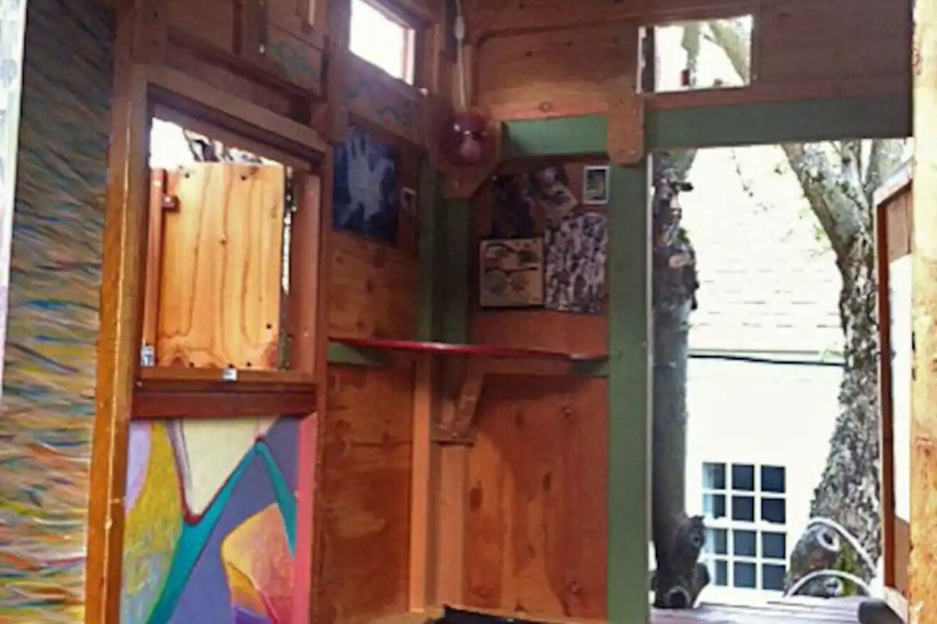 11. Pequeña y tranquila casa del árbol llena de arte: ideal para viajeros en solitario